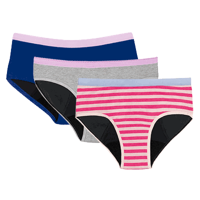 A mix of our 3 styles (Brief, Bikini, and Shorty) to last your entire cycle.